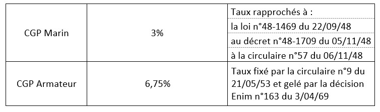 - identiques à la réglementation générale pour la Caisse de Retraite des Marins (CRM),