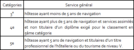 Vous trouverez ci-dessous le classement catégoriel des hôtesses prévu à bord des navires de commerce :