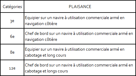 - classement catégoriel spécifique pour la plaisance professionnelle :